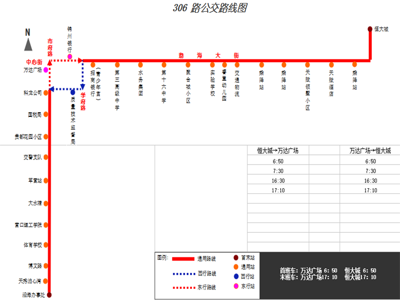 萬達廣場:6:50、7:30/16:30、17:10。